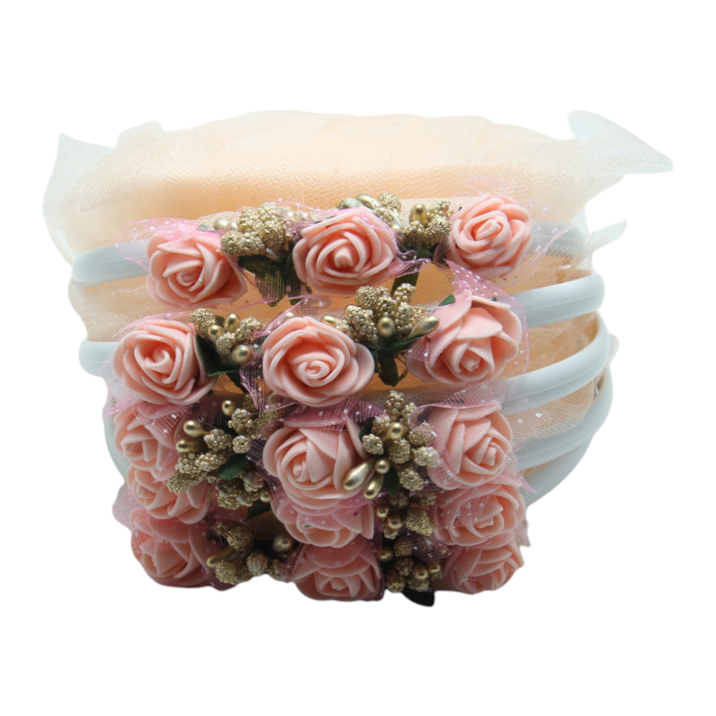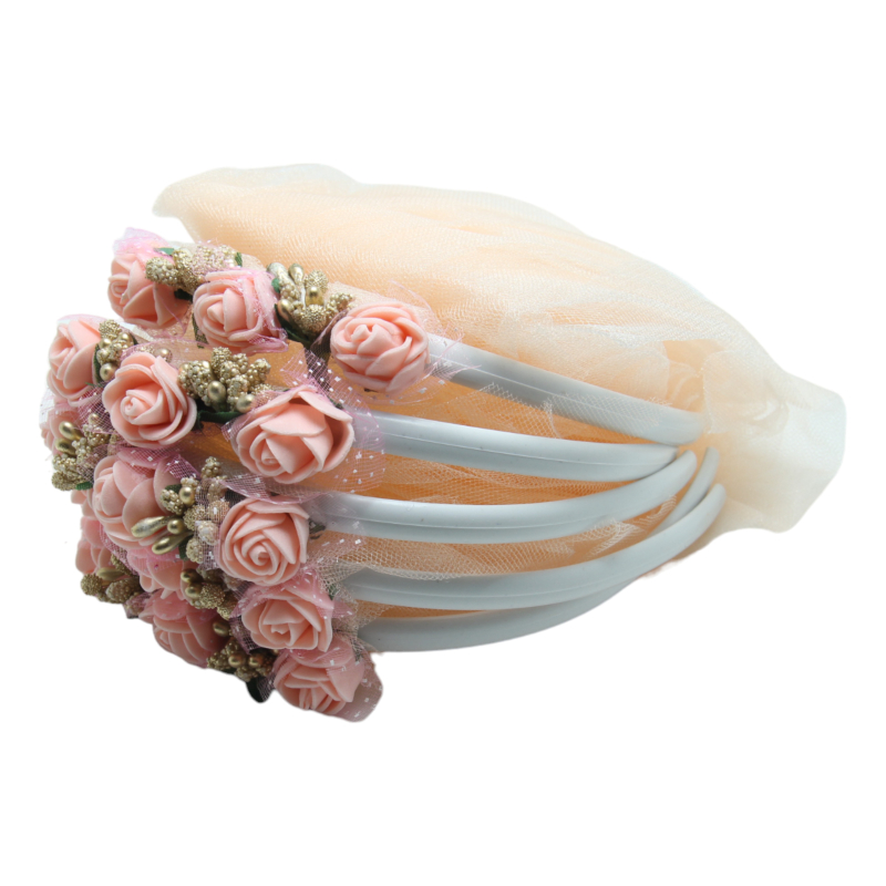 Brautjungfern Haarreifen Weiß mit aprikosenfarbenem Tüll und rosa Blumen