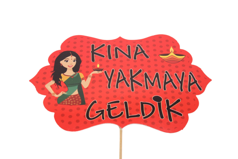 Sprechblase am Holzstiel - "KINA YAKMAYA GELDIK" Modell A