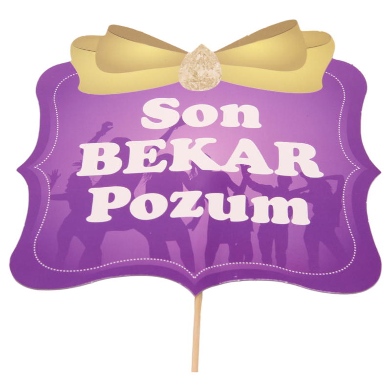 Sprechblase am Holzstiel - "Son BEKAR Pozum"