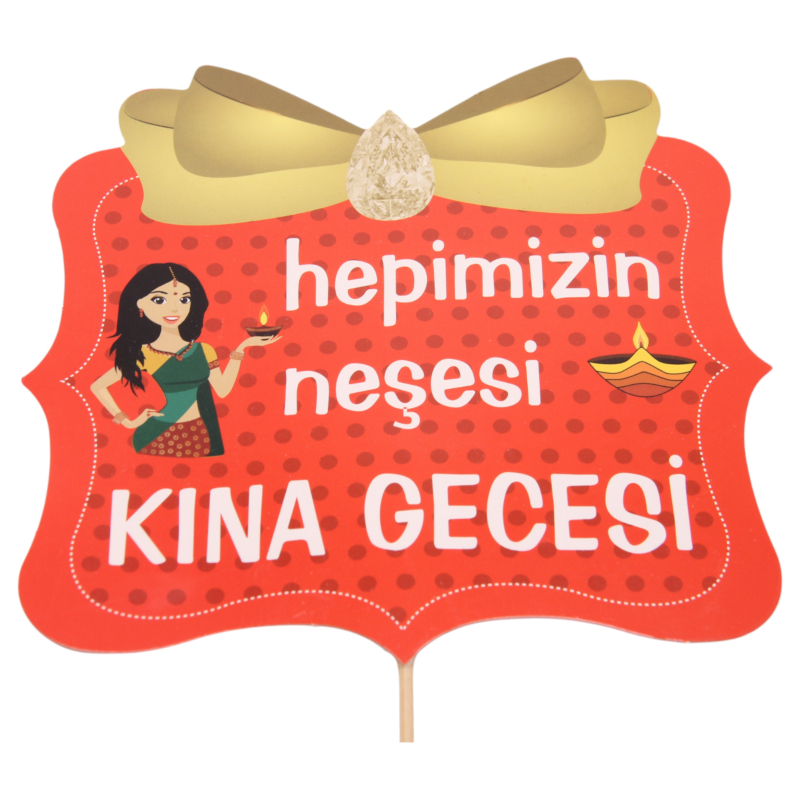 Sprechblase am Holzstiel - "hepimizin nesesi KINA GECESI" Modell A